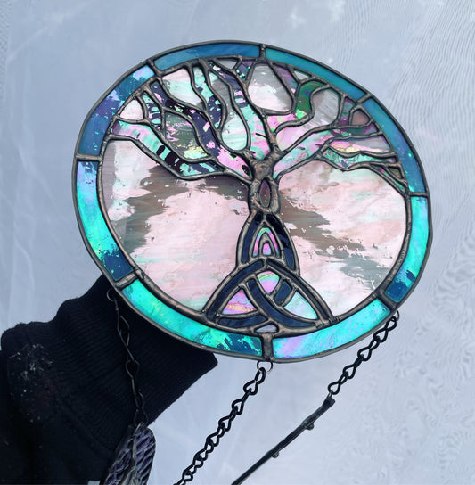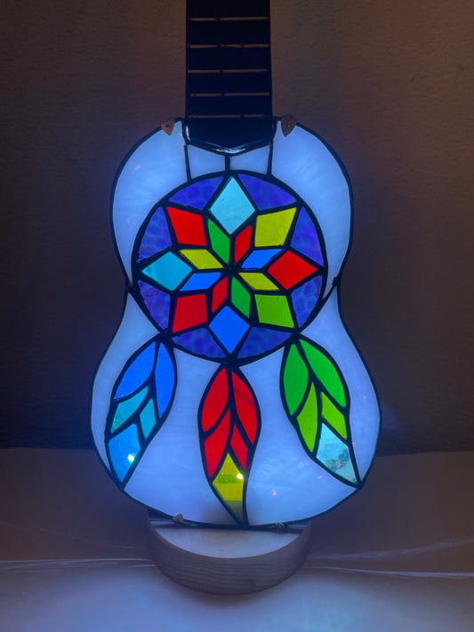 Age of Aquarius Stained Glass suncatcher with stand and LED Strip Light
