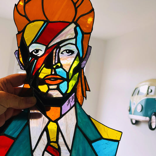 David Bowie Ziggy Stardust Pop Art Stained Glass Suncatcher