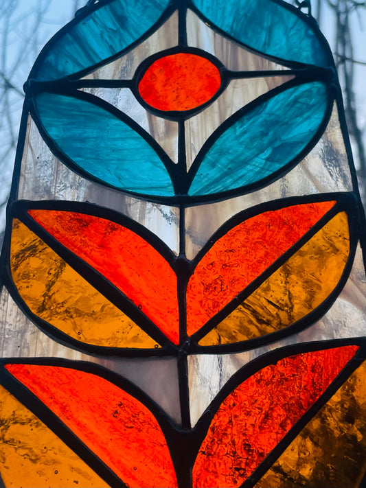 Retro 70's Flower Design Vintage Art Deco Stained Glass Suncatcher