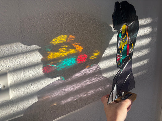 Age of Aquarius Stained Glass suncatcher with stand and LED Strip Light